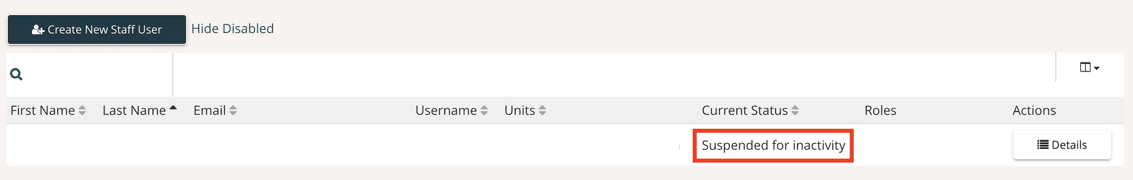 Users who are suspending for inactivity will display that information in the Current Status field on the Manage Users configuration page. Instructions on how to find this page can be found here.
