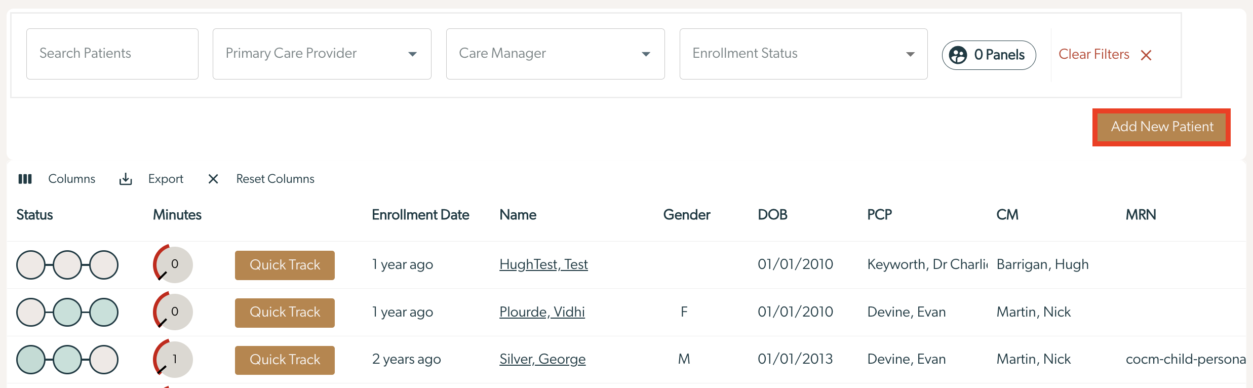 For testing purposes, it can be useful to create test patients in the system in order to review and test functionality.