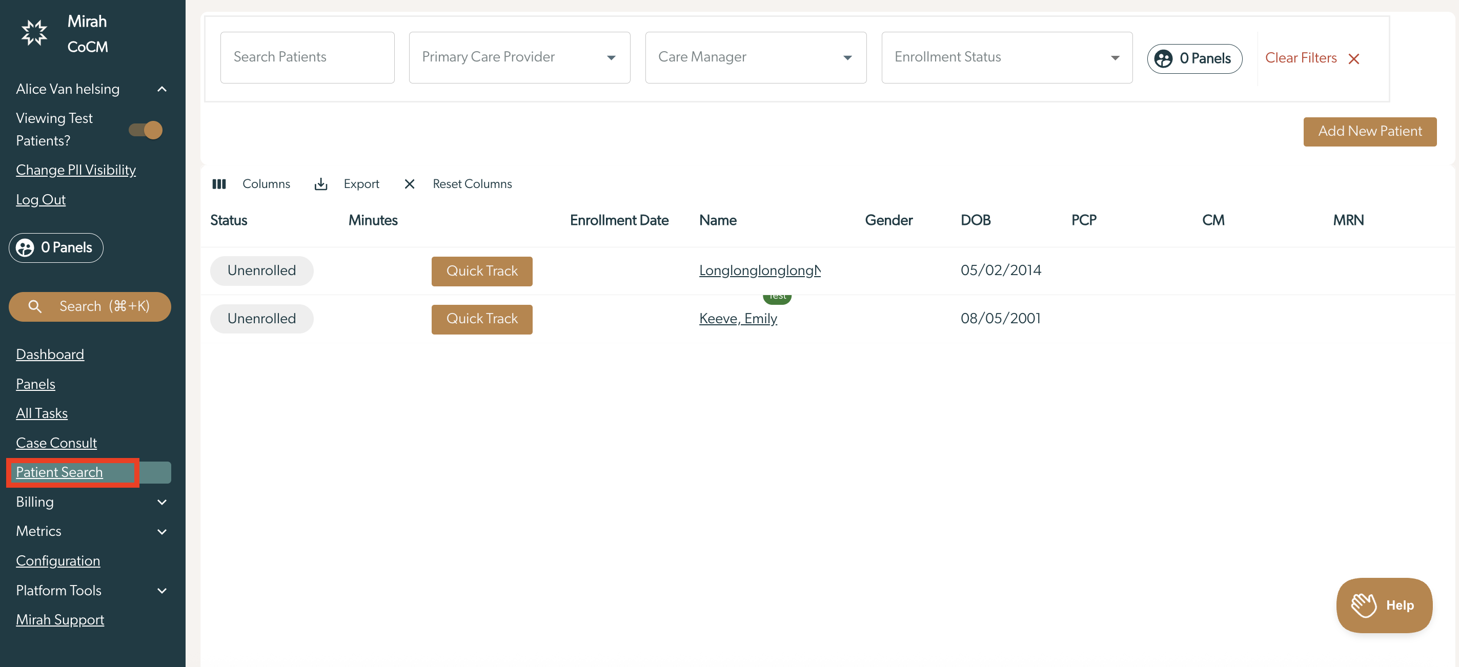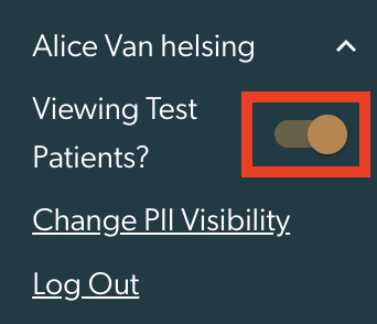 If a patient does not appear in the standard "Patient Search" tab, it may be because they are marked as a test patient. Follow the steps outlined below to search for Test Patients.